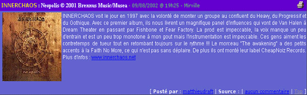 Egalement en ligne : une interview d'Innerchaos par ESS d'